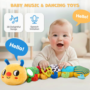 • [Building Skills for Baby] With 38 cheerful melodies and talking imitation mode, this musical baby toy sparks curiosity, auditory skills, and early language development. Watch the caterpillar bounce, wiggle, and crawl, encouraging playful chase-and-move moments that help develop your baby's early gross motor skills. A perfect developmental toy turns everyday play into a joyful, interactive learning experience for your little one!