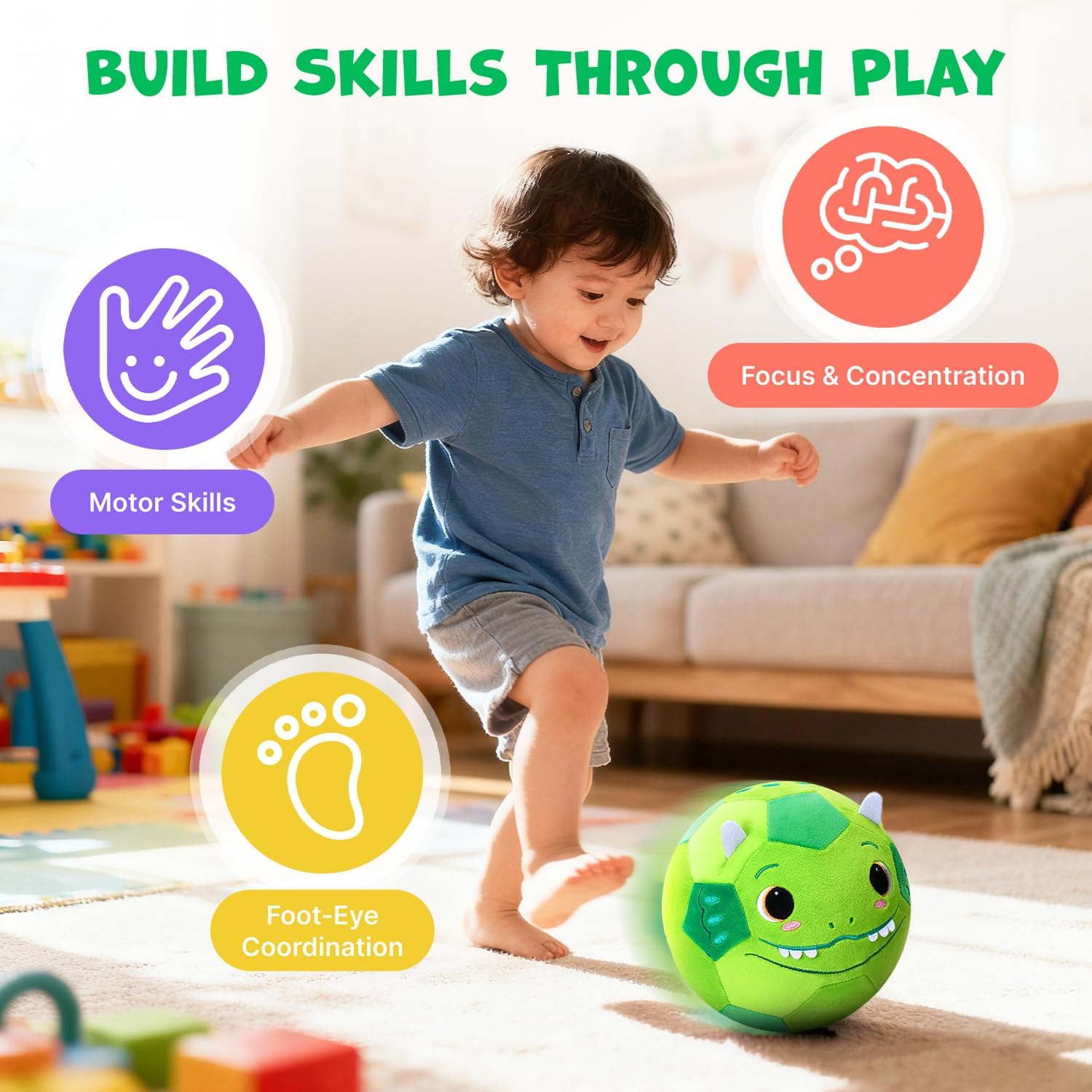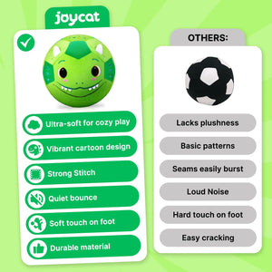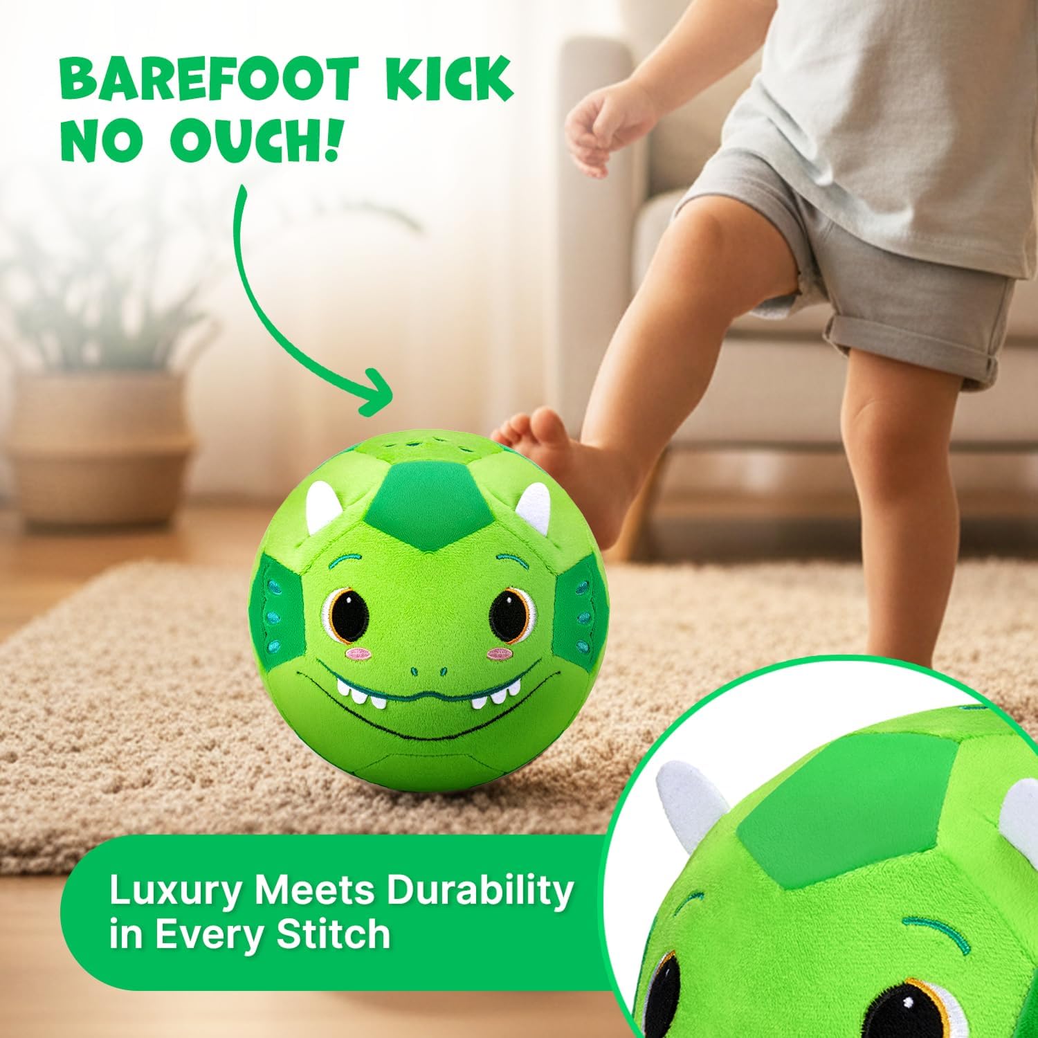 - Indoor Soft Play: Embrace the joy of indoor soccer with JoyCat Plush Dinosaur Soccer Ball! Its super-soft fabric is gentle on little bare feet, allowing toddlers to kick and play freely—with no risk to your floors or furniture