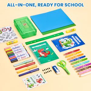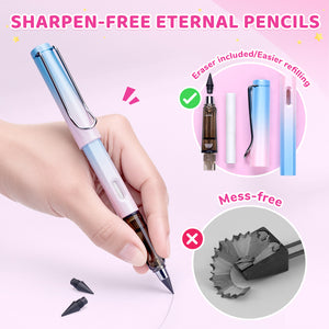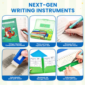 • 【MESS-FREE WRITING & ART CREATE】 The set combine sharpen-free pencil,click marker for seamless homework/art project. Click washable marker prevent cap loss and ink drying with kid-friendly press cap, while durable graphite refill pencil feature twist-replace tip and built-in eraser.HB + color refills fully replace traditional pencil.Include anti-myopia ruler promoting healthy eye habits (dual cm/inch scales),Infrangibile push-pull eraser.Designed to boost organization: no sharpening, no lost cap, no forgotten eraser.Washable ink simplifies cleanup, refillable designs reduce waste, and ergonomic tools support learning efficiency,Keeping young student focused from math class to creative craft.