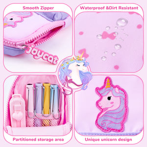 • 【DISTINCTIVE PENCIL CASE】 This Spill-proof pencil case with wipe-clean surface featuring a  theme helps you organize pencils, markers, rulers, and other school and art supplies. It offers ample space for various materials. Made with durable, stain-resistant fabric, it is waterproof, stain-resistant, and easy to clean, with a smooth zipper for easy use by children. The charming and vibrant unicorn design, along with a small portable strap, makes it ideal for outings and travel.