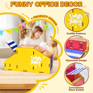 - Fashion and Cool Desk Decor:Inspired by graffiti convenience stores,the hollowed out windows, roofs, graffiti walls designs and the colour clashing are cool and beautiful which will make your office stylish