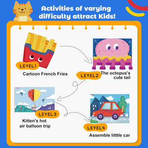 - 【4 Progressive Levels for Confident Learning】 Engineered as the ultimate first cutting book, our kit guides toddlers through 4 structured stages. They begin with simple along a straight line snips and advance to creating their own 3D paper scenes. This step-by-step approach builds confidence, focus, and scissor mastery, ensuring a sense of achievement at every level.