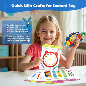 - 【All-in-One Craft Kit with 27 Activities & 4 Quick Wins】 Your child gets everything needed for creative fun! This complete set includes 27 engaging projects, 2 safety scissors with rounded tips, and a non-toxic glue stick. We include 4 special "Quick Win" crafts for instant gratification, hooking kids on the joy of creating and encouraging them to tackle more challenging projects.