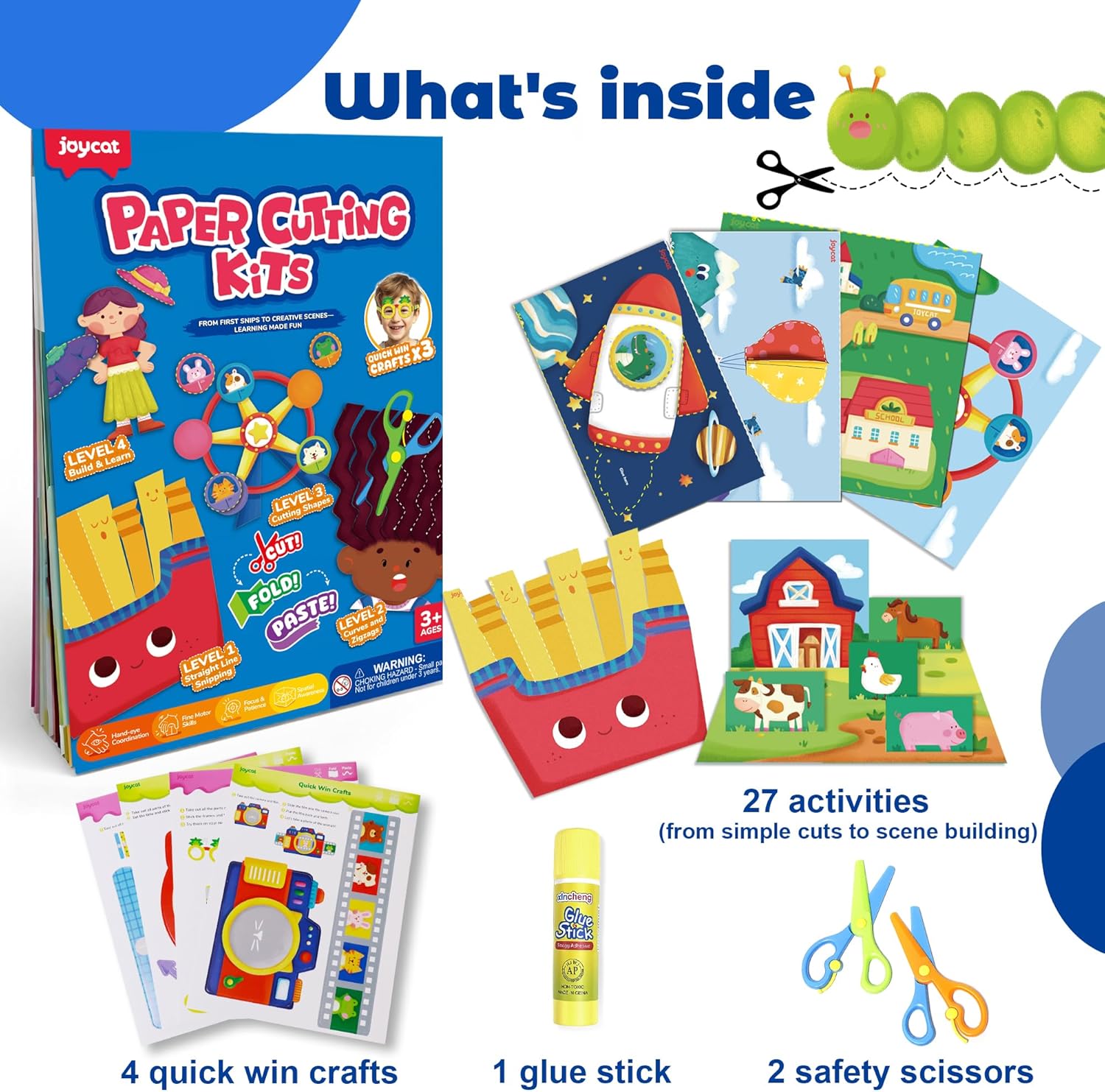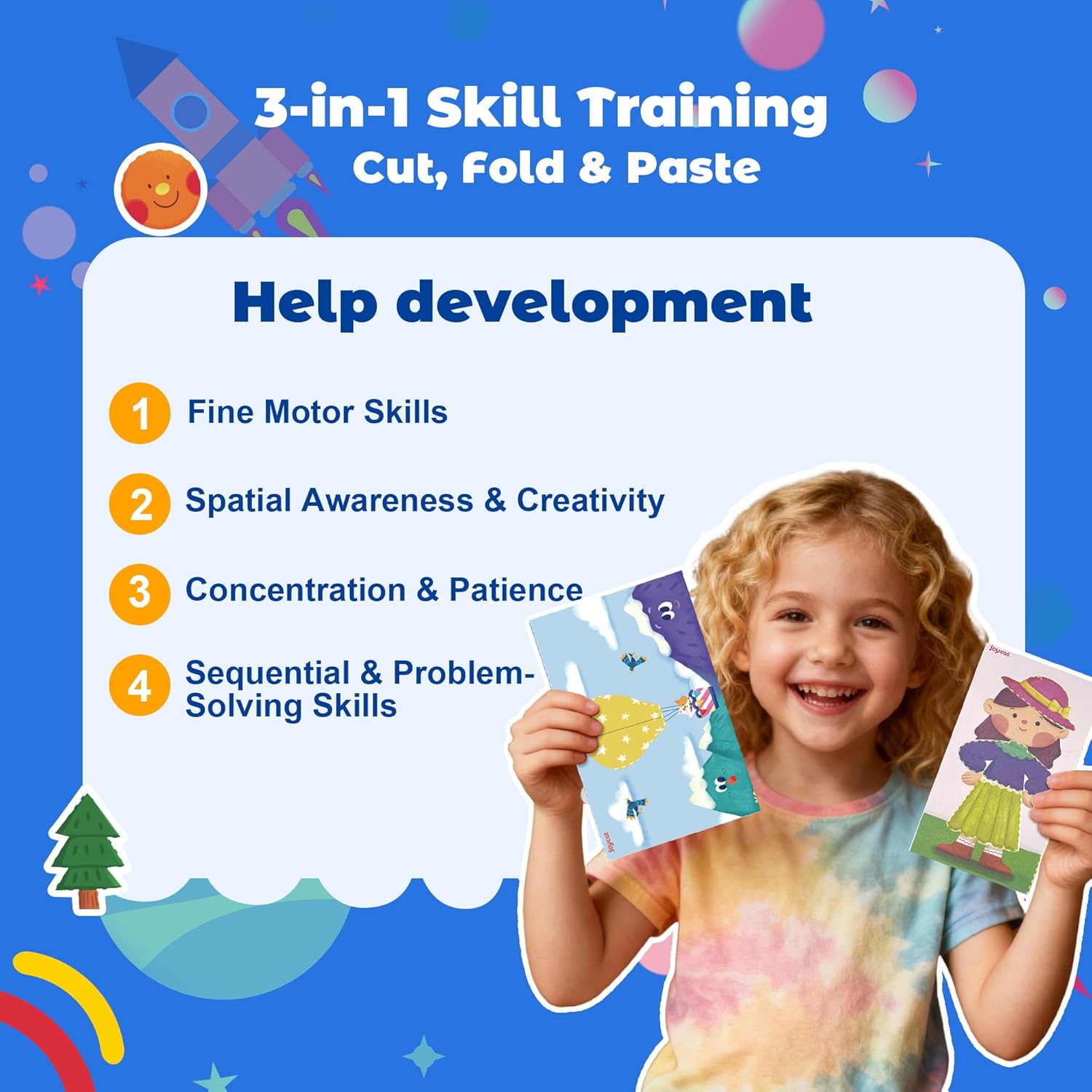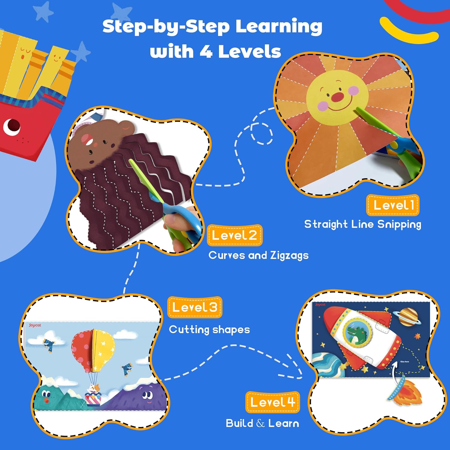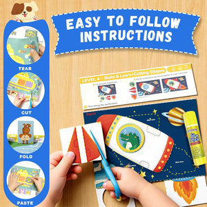 - 【Master 4 Essential Skills: Cut, Fold, Paste & Tear】 Our unique 4-in-1 skill-building approach goes beyond just cutting! Children develop vital fine motor skills and hand strength through cutting, folding, pasting, and even tearing—a fundamental activity for the youngest learners. This comprehensive method ensures holistic development of dexterity, hand-eye coordination, and cognitive abilities.