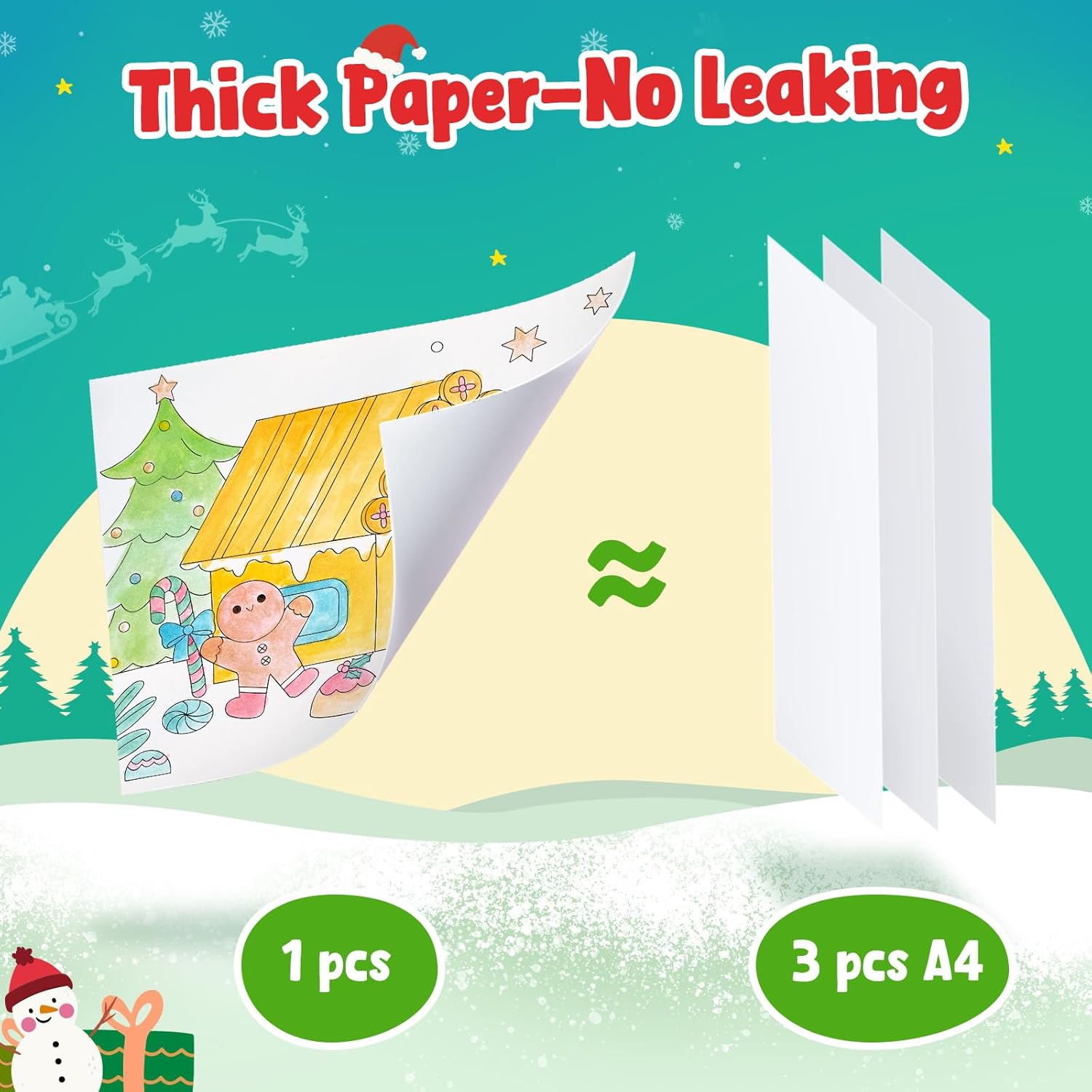 - A Cheerful Christmas Gift That Warms the Winter: This festive watercolor book makes a delightful holiday surprise for kids, bringing cozy creative fun to the chilly winter days. After painting, children can turn their finished pages into Christmas cards, handmade gifts, or joyful decorations that brighten the Christmas tree and home, spreading holiday cheer all season long