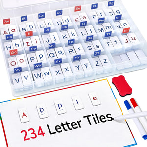 • Comprehensive Educational Toolkit: This Letter set boasts a total of 234 magnetic letter tiles, including 52 uppercase and 182 lowercase letters, accompanied by 6 blank tiles for extra word-building usage. Designed for children in any stages