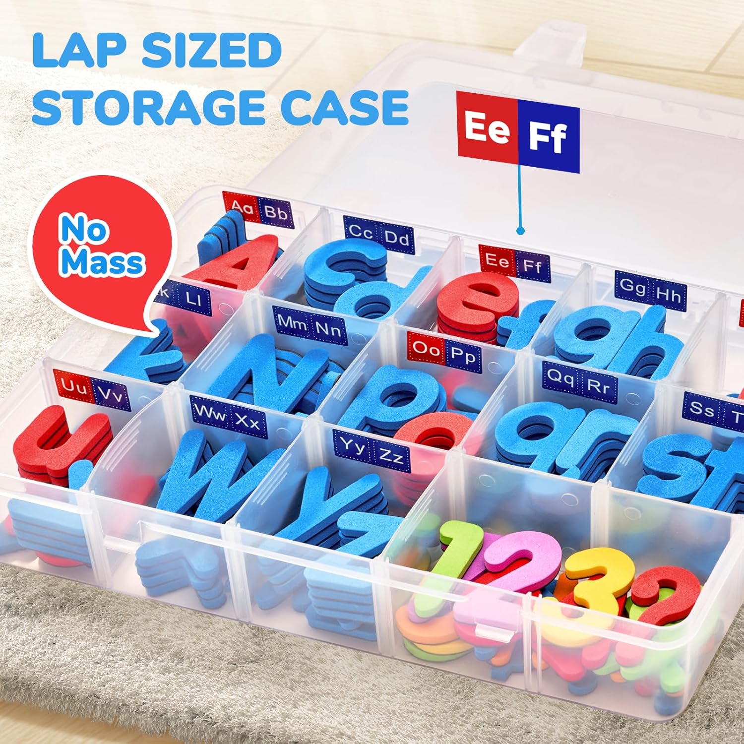 - Ample Letters Set: The sturdy storage box contains 156letters(104lowercase letters, 52 uppercase letters),10numbers, 12symbols, one double-sided magnetic writing board (11.3*7.9inch), three whiteboard pen, one eraser. It completely satisfies your need of spelling all common words and sentences. Very useful for teaching phonics and CVC or CCVC words