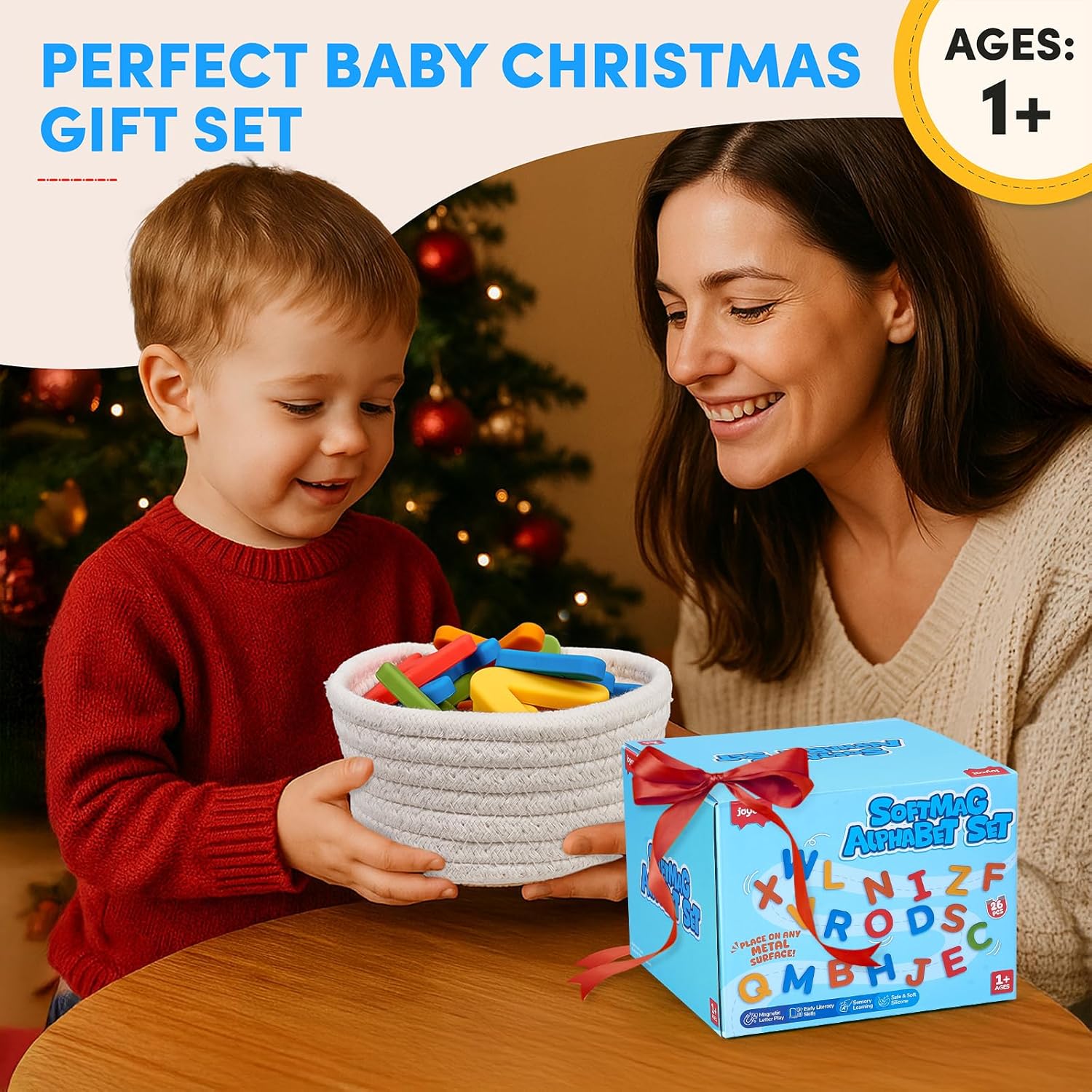 • Design for Kids: Specifically scaled for toddlers aged 1+! Each flexible letter measures 2.05" x 2.05" x 0.27" with soft, rounded edges for safe handling. The embedded magnets ensure secure attachment to metal surfaces during active play, while the lightweight design promotes independent learning