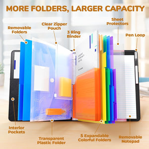 • All-in-One Efficiency: Combines a 3-ring binder and a magnetic clipboard with 5 expandable dividers, sheet protectors, folders, and a zipper pouch (holds 100+ sheets).