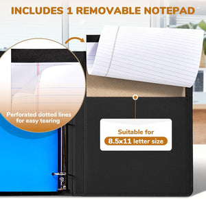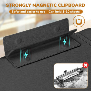 All-in-one portfolio binder that keeps your life organized! This 12.4"x10.2" PU leather organizer features 5 colorful dividers, sheet protectors, a removable notepad, zipper pouch, and magnetic clipboard—perfect for students, professionals, teachers, and travelers. Waterproof, wear-resistant, and holds 100+ sheets. Removable compartments let you carry only what you need, while the magnetic board makes writing easier and safer than traditional clips. Your new favorite way to stay organized!