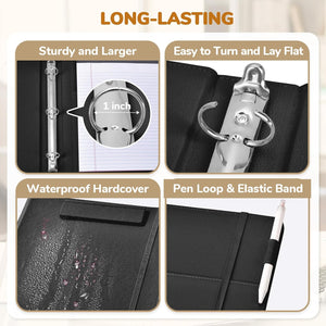 Home 3 Ring Binder Portfolio Clipboard with Storage – PU Leather Organizer with Magnetic Board & 5 Dividers