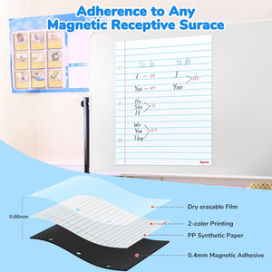 - [Multiple Scene Uses] JoyCat magnetic lined paper can be widely applied for school, home, and office. It is classroom essentials for teachers, large size ensures the entire class can see demonstrations clearly;can also be used for making lists, mathematics problems, science/lab projects, and even posting daily classroom schedules or rule