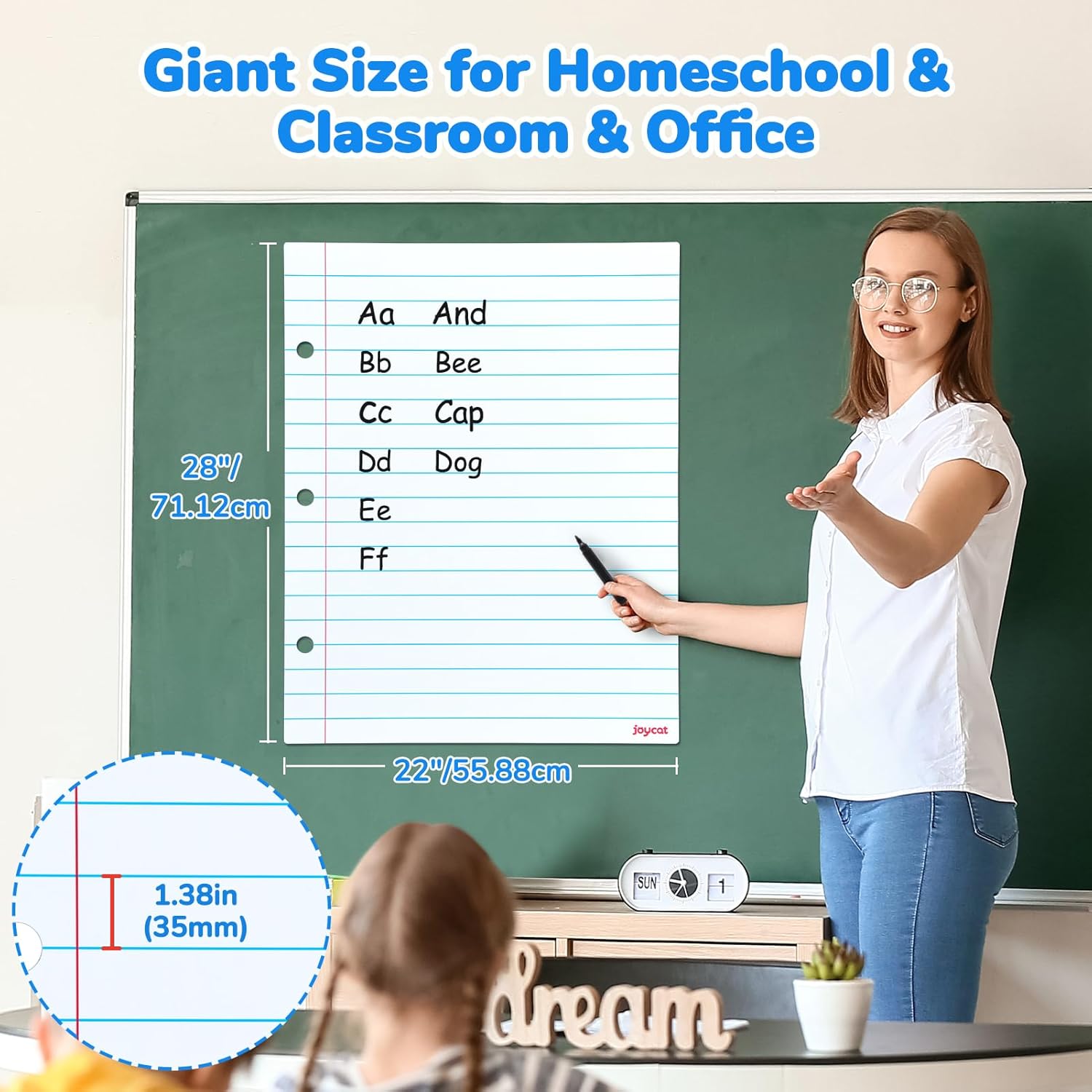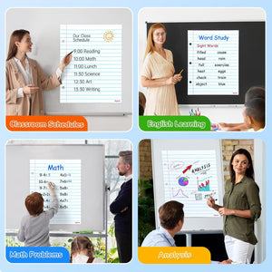 - [Giant Size for Demonstrations]Measuring 22"L x 28"H and 1.38" spacing between the horizontal lines,the dry erase lined paper whiteboard ideal for teachers to teach and interact in class