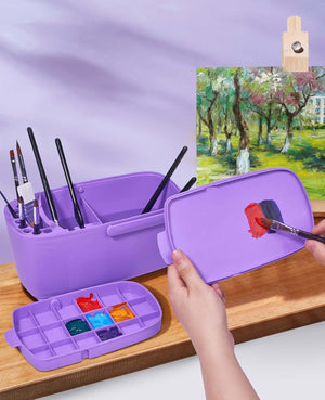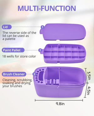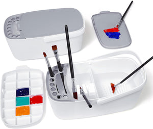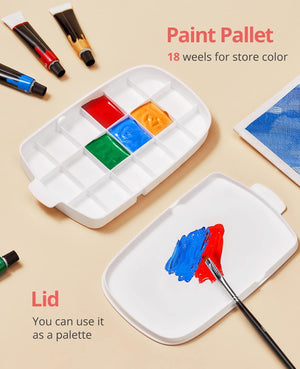 - 【Multi-Functional Brush Basin】It comes with paint palettes with 18 wells for paint storage and a brush wash basin. The lid can be used as a paint tray palette for toning and mixing.