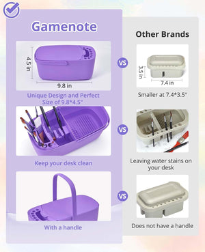 - 【No Mess】Designed to keep surfaces safe and not only keep your brush clean but also the area around you. Our paint brush holder has a separate compartment to hold your brushes of different sizes, so you don't have to worry about water or paint drops on the table while drying.