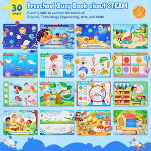 - JoyCat toddler busy book features 20 engaging STEAM subjects such as robotics, ocean ecology, engineering vehicles, and the water cycle. It inspires creativity and helps develop essential preschool skills, making it a fantastic companion for both home learning and travel