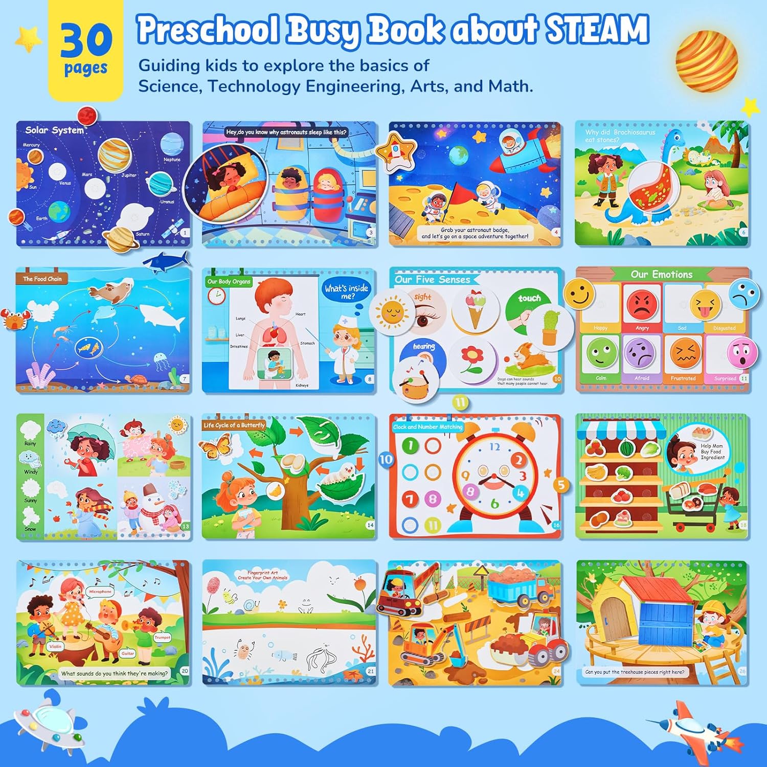 - Made with quality materials, this reusable STEAM-themed learning book introduces kids to topics like space exploration, dinosaurs, body systems, and weather through interactive pages designed to spark curiosity. Created for children ages 4-8, it promotes independent learning and is highly appreciated by parents for its educational value and vibrant presentation