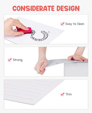 - Durable & Easy to Clean for Repeated Use: Made with a smooth PET surface, the boards wipe clean easily with the included erasers or a cloth, making them suitable for repeated daily use