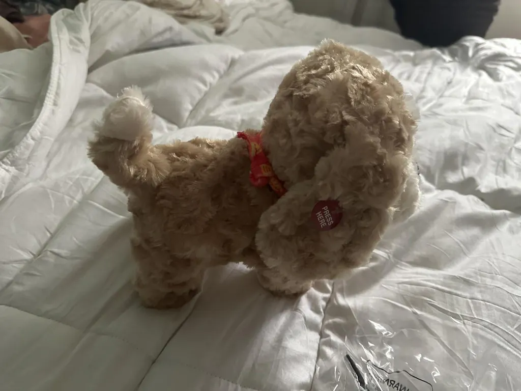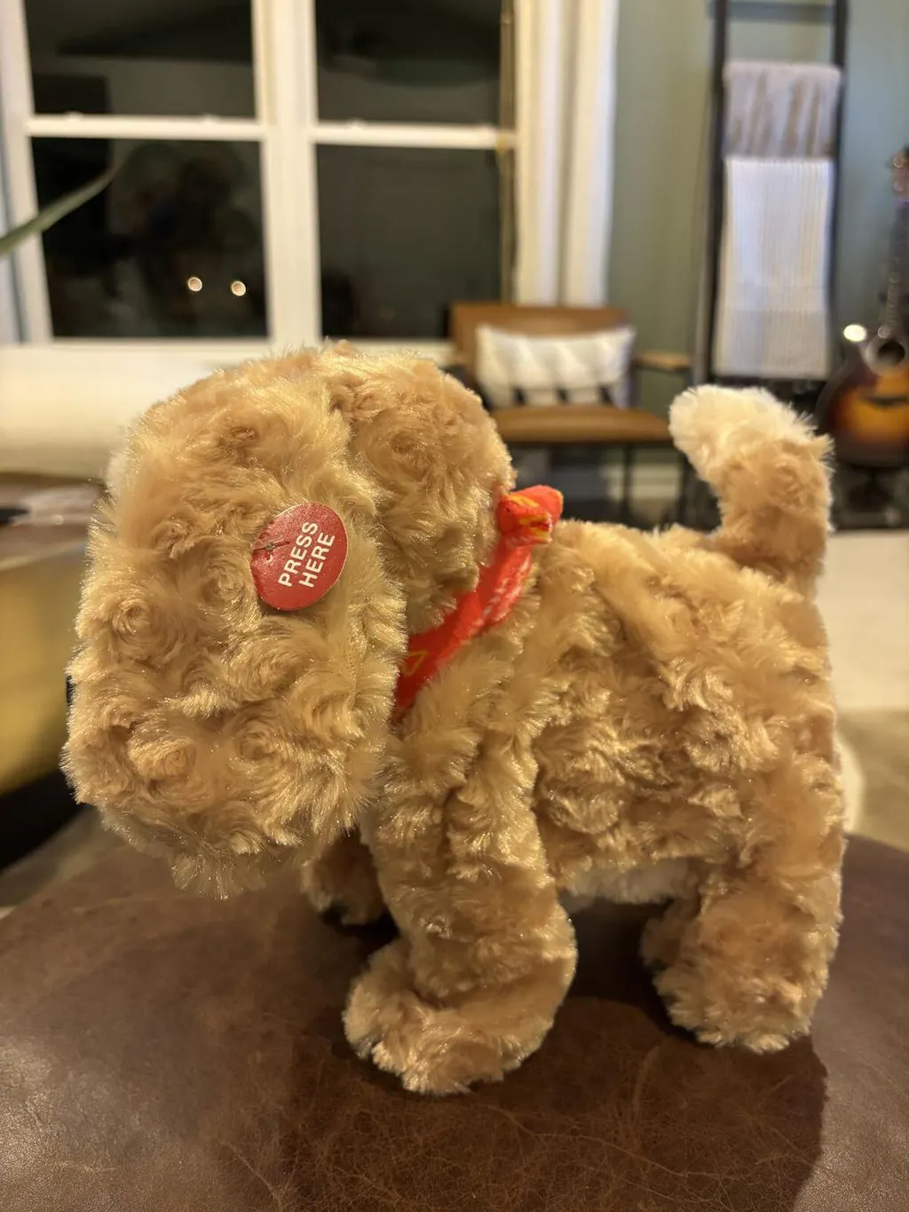 - Soft, Safe, & Huggable – Made with upgraded curly plush and gentle embroidered eyes, Lucy is a lovable companion that’s perfect for cuddles, playtime, or travel. Her realistic design makes this walking dog toy for toddlers both comforting and entertaining.