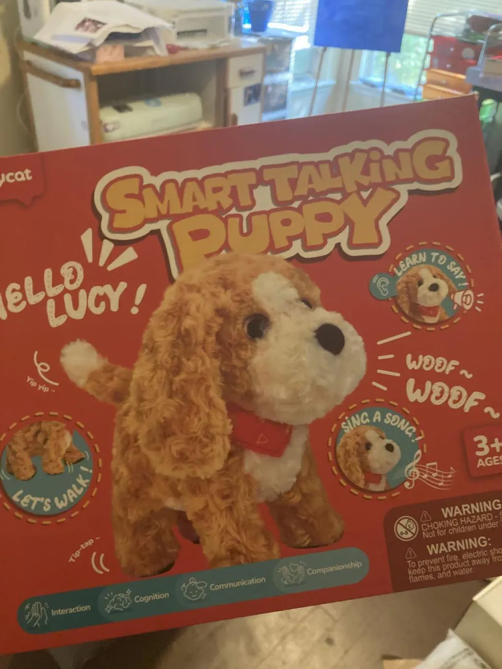 - Interactive Fun with Lucy – Meet JoyCat Smart Talking Puppy, the adorable companion that responds to your child! With 13 feedback sounds, 15 interactive functions, and 8 daily conversation commands, Lucy walks, barks, wags her tail, and responds to voice commands just like a real pet. Lightly touch her head and watch her react with playful expressions – perfect for engaging young minds with interactive plush toys.