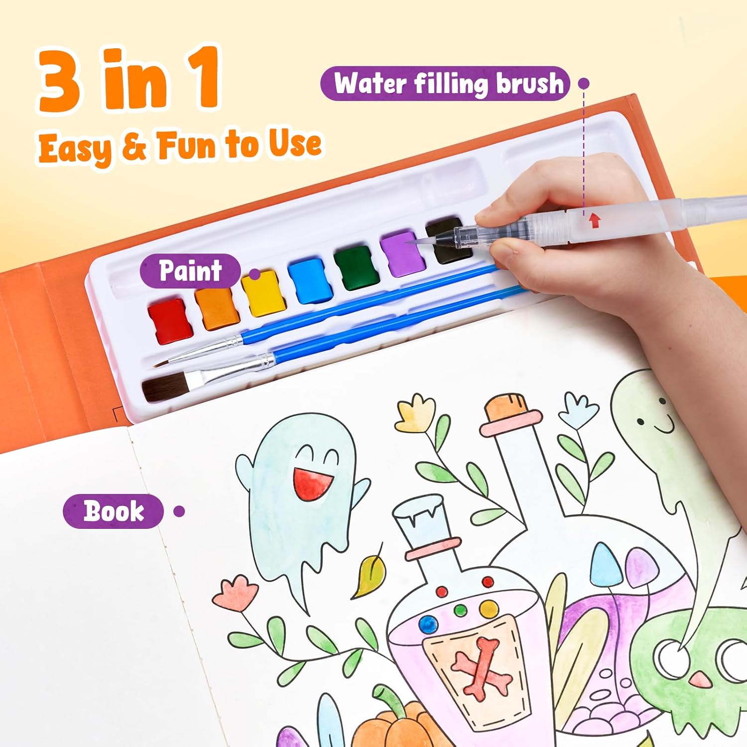 - Mess Free Coloring for Toddlers: Innovative 3-in-1 Design, Combine paint, brush, and coloring books in a single package. Designed in bright colors, it's a great preschool and homeschool gift for your children from us!